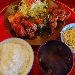 食堂MARUKOのヤンニョムチキン定食は間違いのない逸品