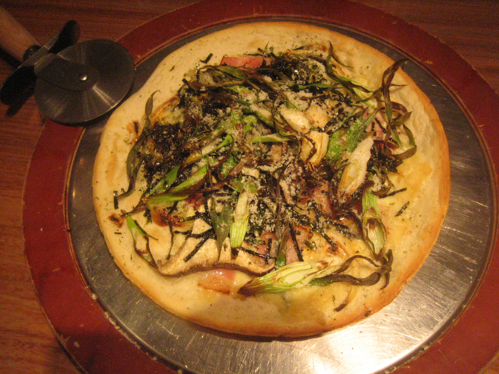 せんの和風ピザ 2010年05月20日 またまた、新富町の「せん」で飲み会したよ。人がたくさんいても、店が広いから何とかしてなる店だね。 いろいろ頼んだ中に、こんなメニューがあったので、写真に撮ってみたよ。 ピザなんだけど、長ネギとか昆布とか海苔とかがトッピングしてあるんだ。生地はパリッとしていて、チーズのとろみを楽しむことができるよ。和洋折衷の味わいが、ちょっと新しい感じがしたな。 < 前の記事次の記事 > コメント コメントフォーム 名前 コメント 評価する リセット リセット 顔 星 投稿する 情報を記憶