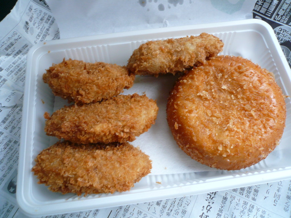 このblogを見てくださるいろんな人からおすすめだった水橋の「堀マート」のコロッケをついに口にしたよ。今回は、ショーケースに並んでいたカレーパンも一緒に買ってみたよ。