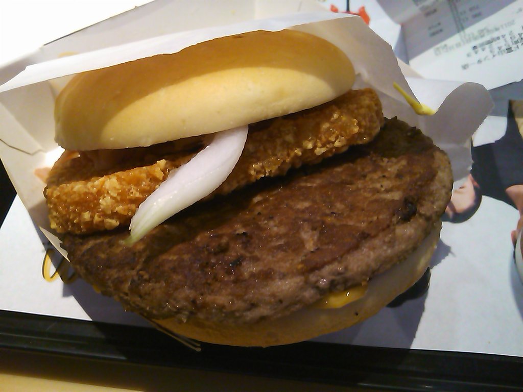 マックのアイダホバーガー 2011年02月10日 マックのBig America2キャンペーン第2弾の『アイダホバーガー』味わってきたよ。 ジャガイモの産地アイダホ州の名前をいただいているだけあって、ハッシュドポテトが入っていたな。 ←Big America2 を食べたという人はクリックしてね。 もともと相性のいいもの同士を一体化させた感じ。悪くはなかったけれど、炭水化物に炭水化物を(それも揚げてから)はさむってどうよ、と思ってしまったな。 次回作にも、期待しておこう。 ←マックはビッグマックに限るという人もクリックしてね。 < 前の記事次の記事 > コメント コメント一覧 (2) 2. ピート 2011年02月12日 23:32 モスでもハッシュドポテトをはさんでいたとは、 知らなかったな。 っていうか、最近、モスには行ってないなぁ。 アイダホは、もう終わっちゃって、 次のシリーズが登場しているね。 また確かめに行かないと。 1. えりこ 2011年02月12日 13:50 私もアイダホバーガー食べました。 じゃがいも好きなのでおいしかったのですが、相変わらずボリュームすごいですよね。 この前モスで出ていた「塩バターチキンバーガー」もハッシュドポテトが挟まっていたし、最近流行ってるんですかね〜。 そういえば前に成宮寛貴くんがハンバーガーにポテトを挟んで食べるのが好きって言ってたなぁ。 コメントフォーム 名前 コメント 評価する リセット リセット 顔 星 投稿する 情報を記憶