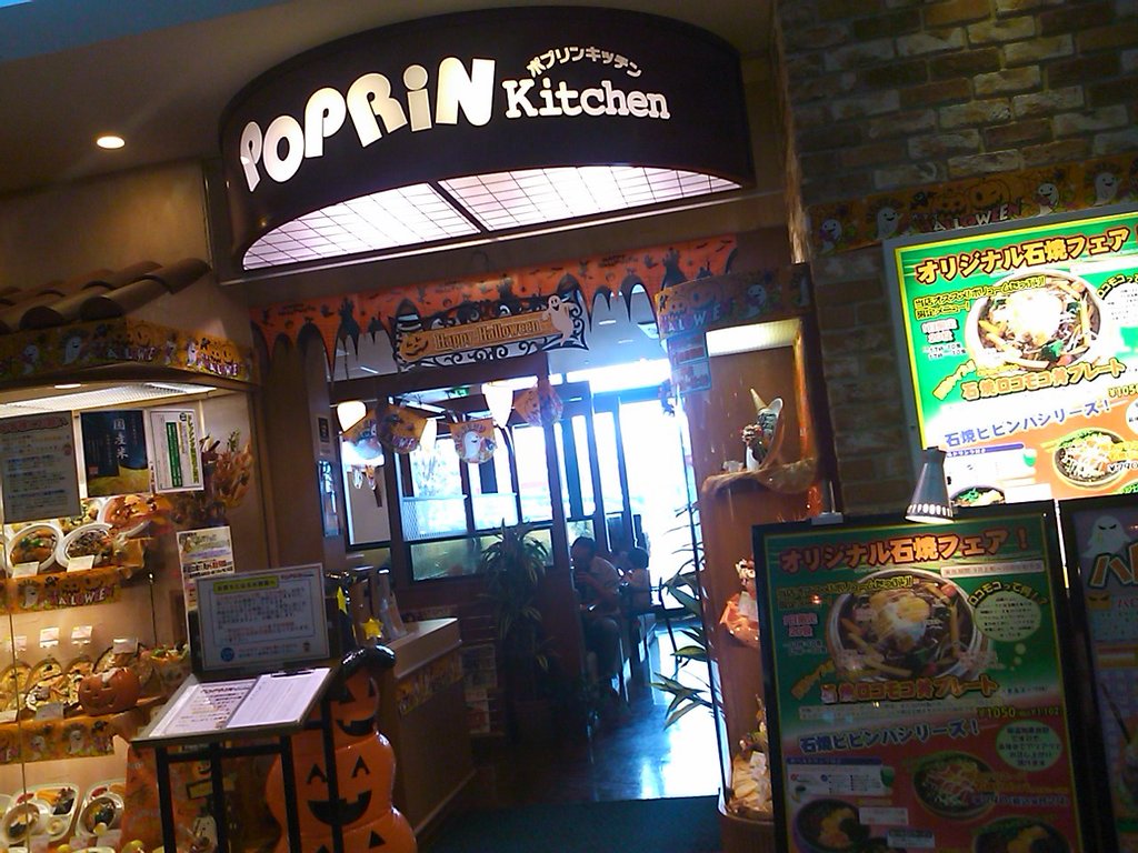 お休みの日だから、どの店もいっぱいだったけれど、今回は「ポプリンキッチン」をチョイス。知らなかったけれど、特大パフェがウリのでか盛りの店みたい。3000円超のパフェなんて、誰が食べるの(笑)。