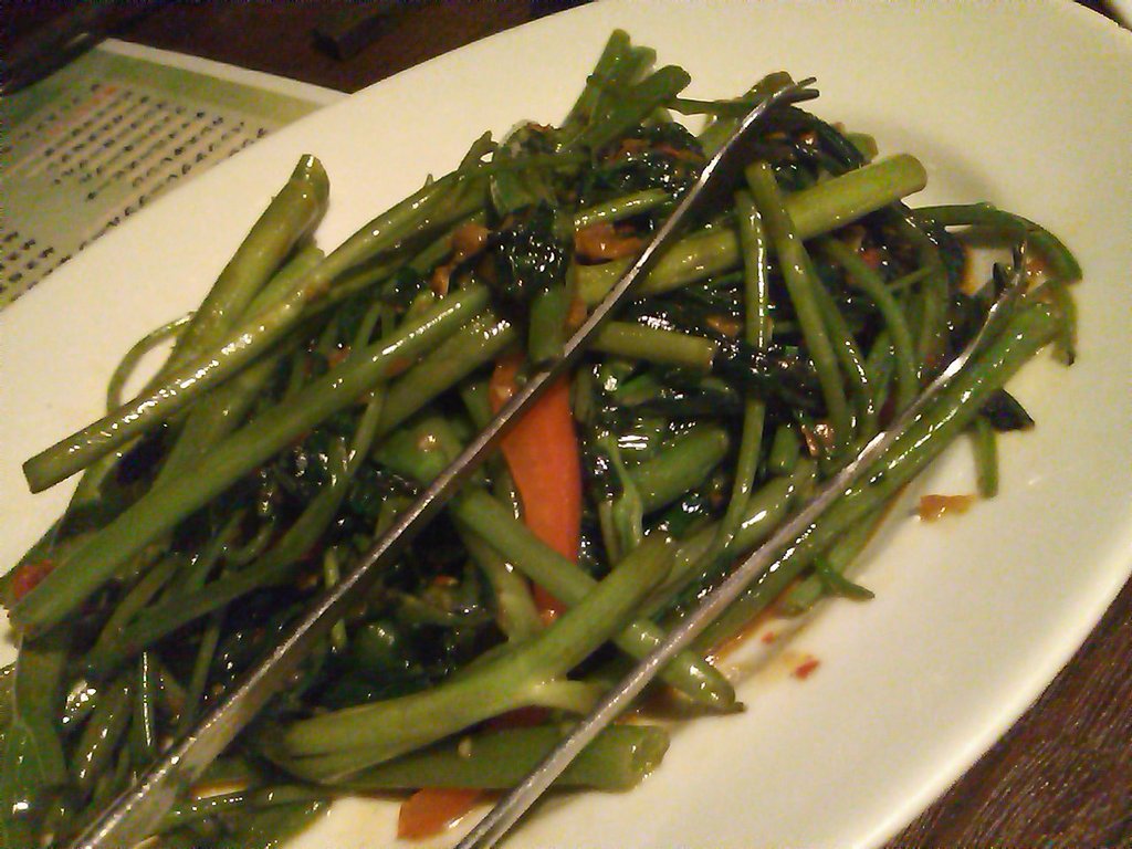 この手のお店に来ると必ず注文するのが『空心菜の炒め物』。ピリ辛っとしていて、油で炒めてあるのにすっきり食べられるところが不思議な一品なんだ。