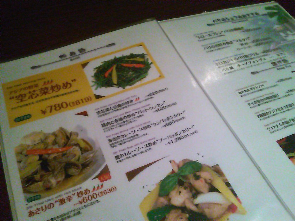 メニューはこんな感じで、エスニックな品々がぎっしり並んでいたな。