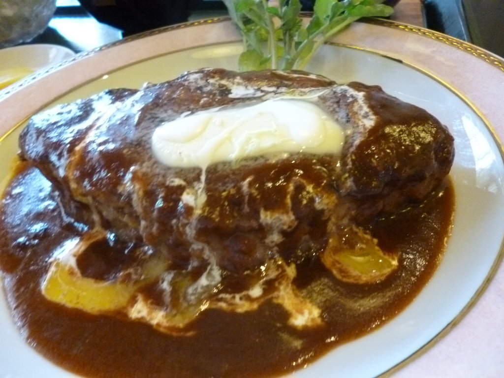 デミグラスソースも、時間をかけてじっくり作ってある感じ。生クリームが載っている部分はマイルドになって、また違った味わいを楽しめるんだ。