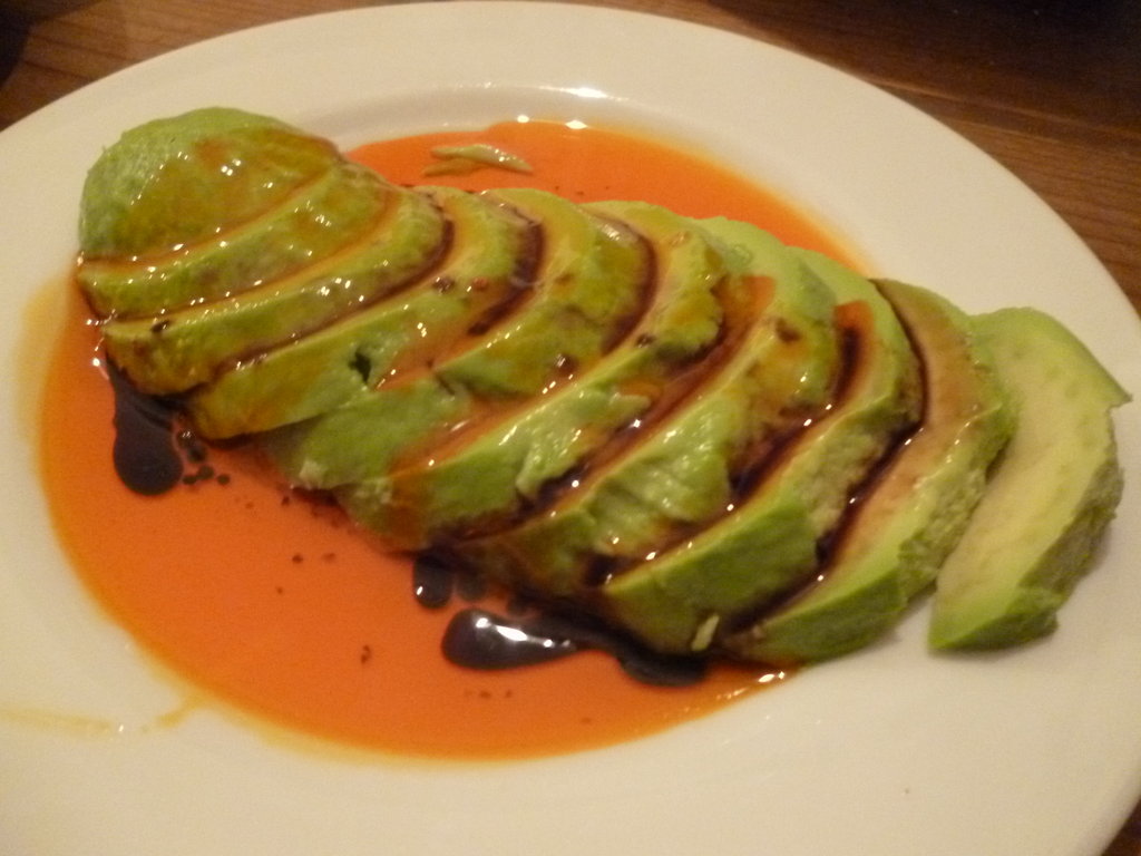 アボカドのラー油がけ。シンプルだけど、これだけで、酒の肴になるから意外だったな。