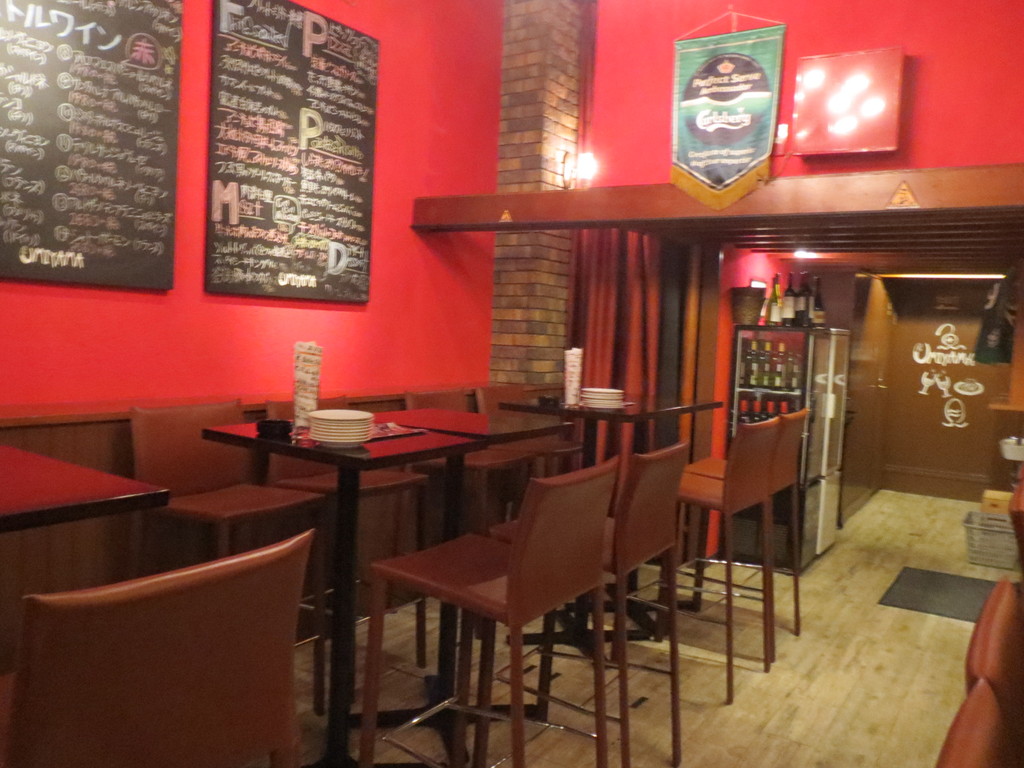 赤を基調にしたホットな雰囲気の店内は、情熱の国スペインのイメージ?