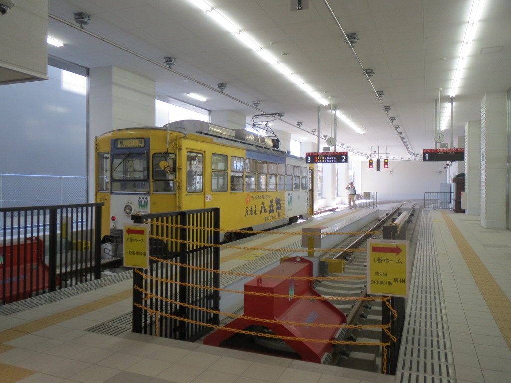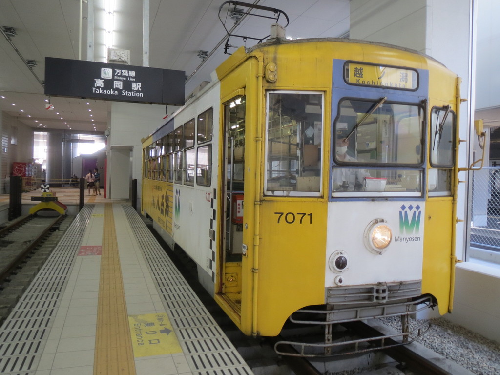 万葉線は、富山の市内電車と形が似ているけど、乗降口が前後にしかないところがちがっているね。