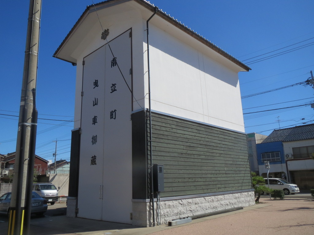 途中で見かけた、曳山の蔵だよ。ずん、とそびえ立っている感じがみごとだったな。