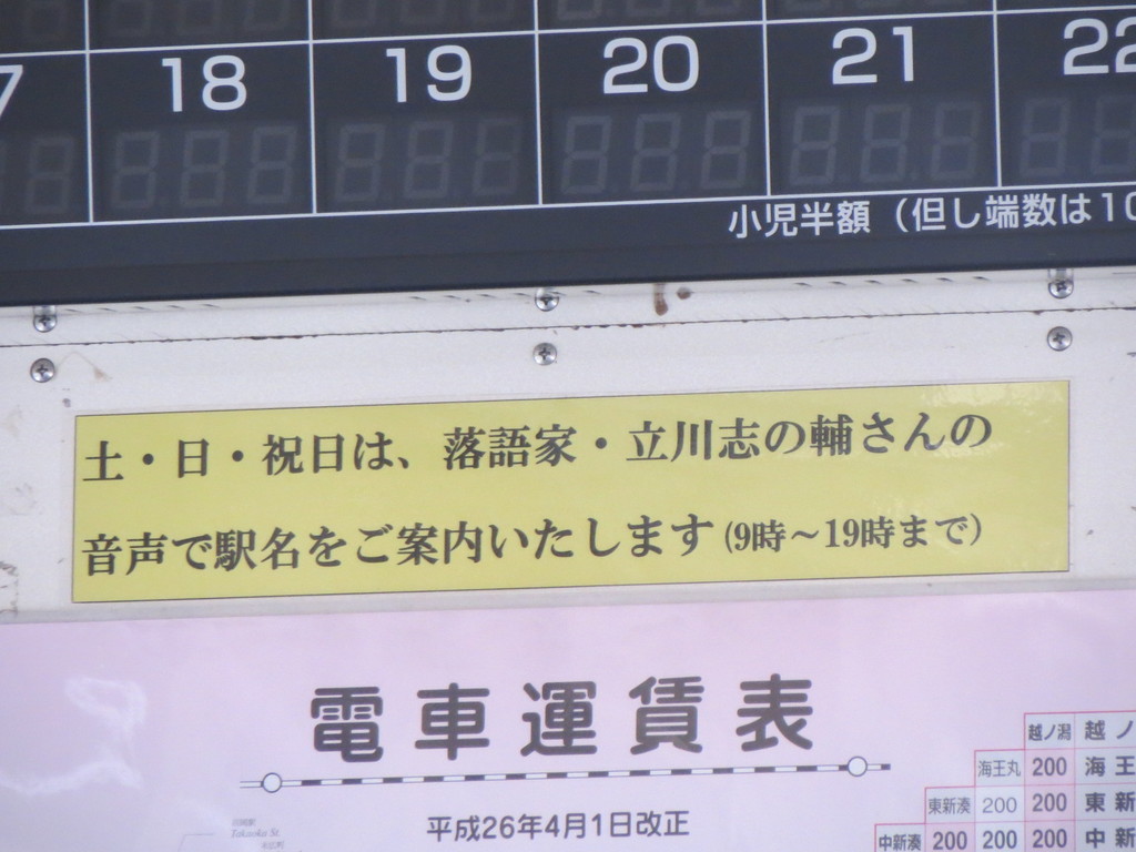 としまるくんとしながくんのイラストが天井に描かれていたり、休日には志の輔師匠の車内アナウンスを聞けたりと、観光仕様になっていたよ。