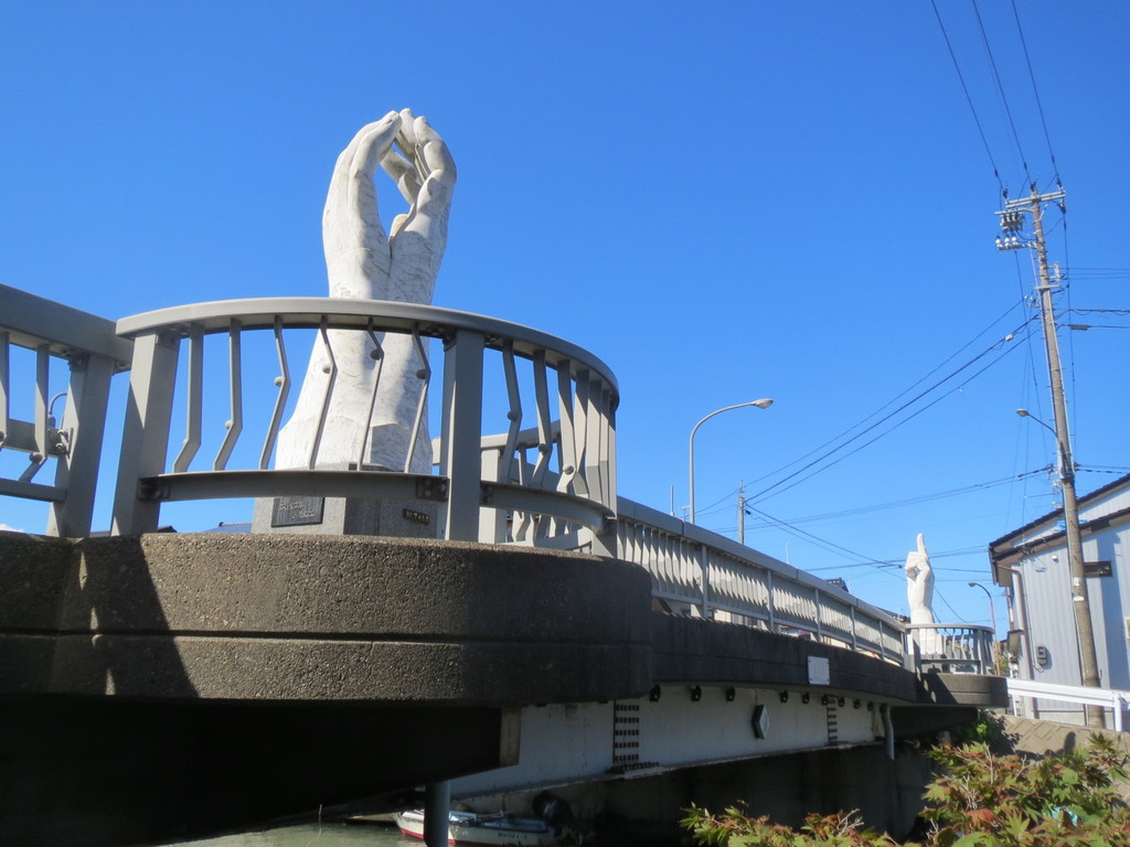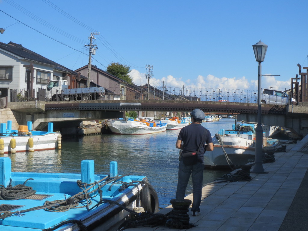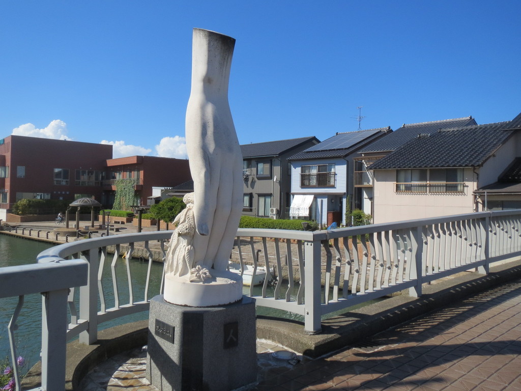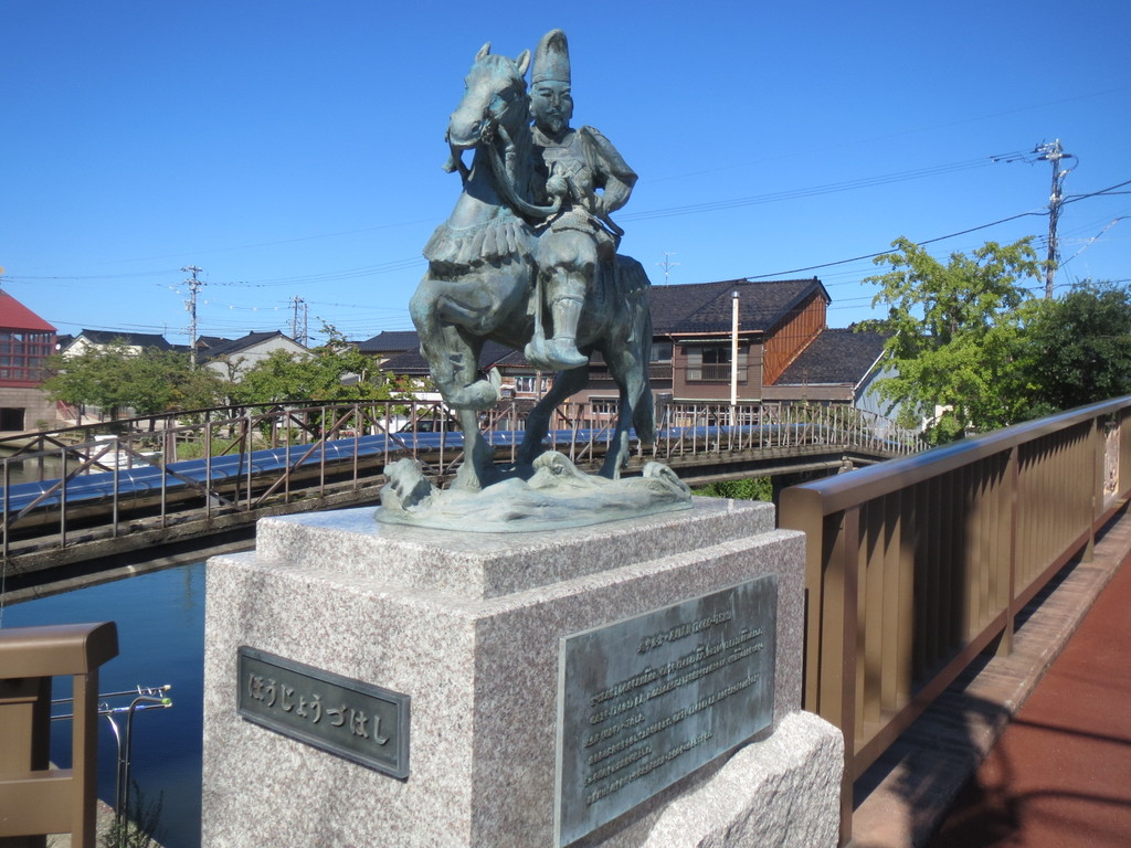 この日のスタートは、放生津橋。この辺りには、室町時代に都を追われてきた第10代将軍足利義材(よしき)が政権を立てたんだって。越中公方と呼ばれていたみたい。放生津橋のたもとには、その公方様の銅像が堂々と構えていたよ。
