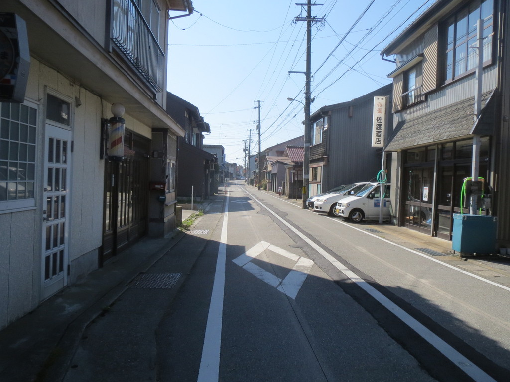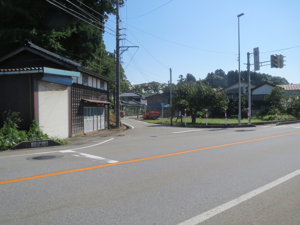 手前の幅の広い道が国道8号線。それを横断して、奥に入って行ってる細い道が旧道だよ。