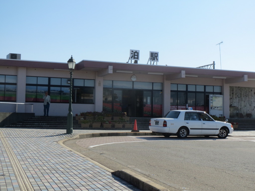 「五叉路」から泊駅までは、5分ほど。ようやく到着したんだけれど、富山行きの電車は、そこからさらに1時間待ちなのだった(笑)。