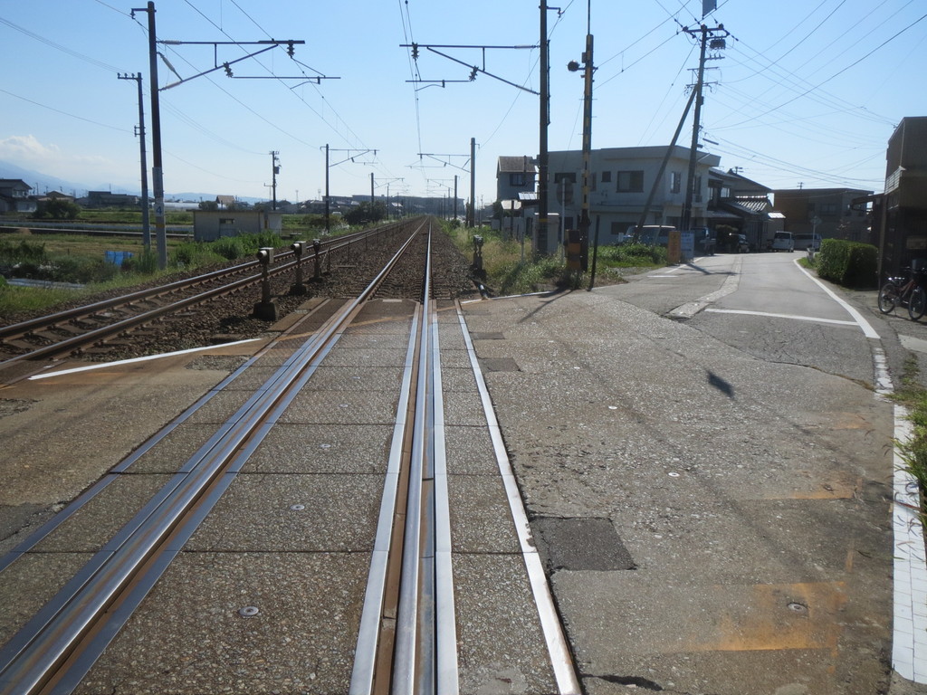 JRの踏切の右に見えているのが、ここまで歩いてきた道。