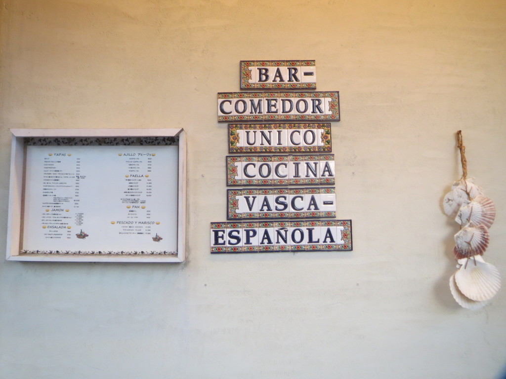 というわけで、スペイン料理を食べさせてくれる新富町の素敵なお店「バル・コメドール・ウニコ」で、楽しく飲み食いしたよ。入り口の横の白壁には、こんな素敵な看板がかけてあるんだよね。これがまた、とっても夏の雰囲気にぴったりなんだ。