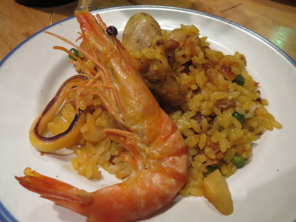パエリアには、エビ、あさり、イカ、チキンが入って、なかなかの具だくさん。なかなか濃厚な味付けで、これを食べながらワインを飲む、というのがぴったりな感じだったな。