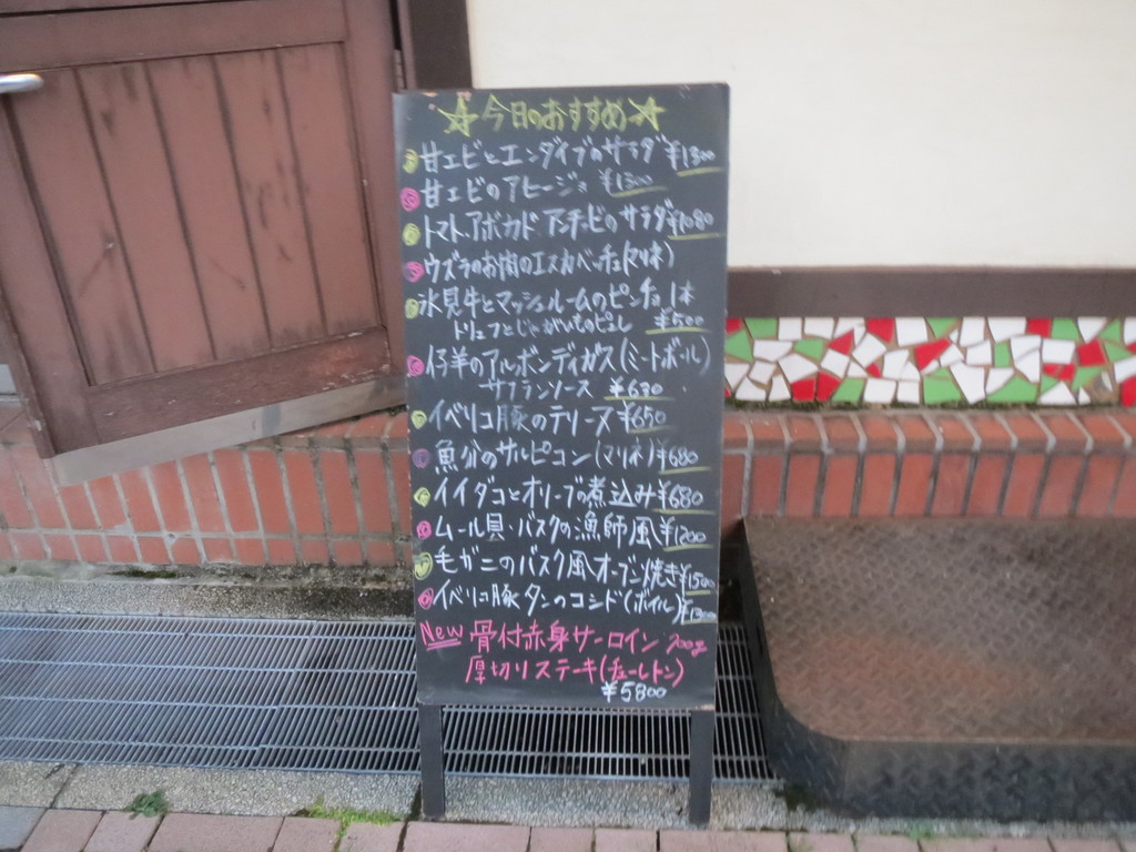 入り口には、今日のおすすめを書いた黒板が出ていたな。上から順に全部、といって注文しても、すご〜く楽しめるお店だよ。