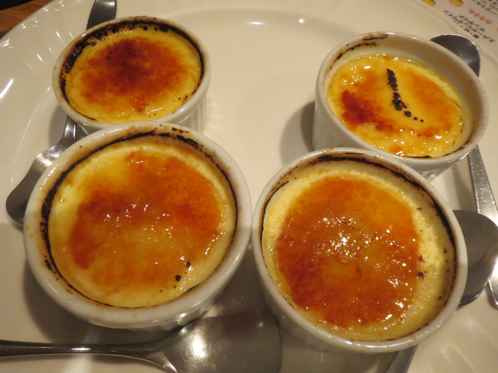 デザートには、クレマ・カタラーナ。ムースのようなカスタードの上に、ぱりぱりと焦がしたカラメルがのってくる、カタルーニャの洋菓子だよ。ふわっと口の中にほどけていく感じが、たまらなく、いいと思ったんだ。
