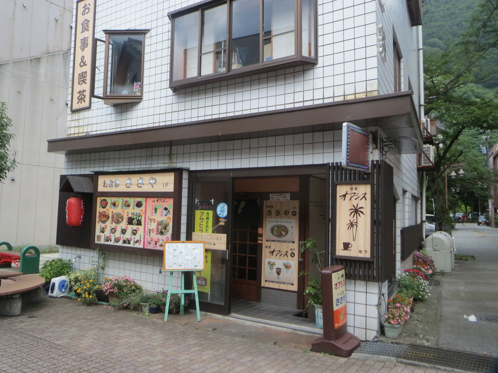 宇奈月温泉には何度も泊まりに来て、そのたびに、温泉街をそぞろ歩きしているんだ。そのときから、ずっと気になっていたお店がこの「ささや」だよ。でも、何か食べる時間に歩いていることはなくて、だから、これまで入ったことはなかったんだよね。