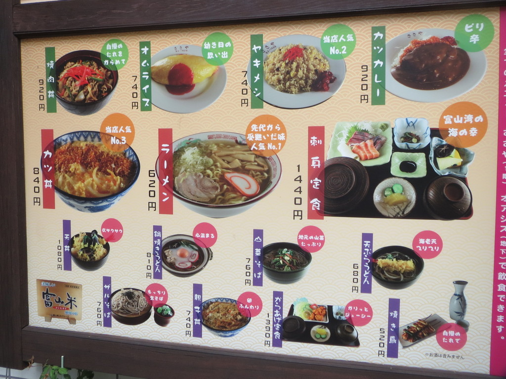風呂上がりにはビールが一番だよね。宇奈月温泉の総湯「湯めどころ宇奈月」を出たボクは、温泉街にず〜っと昔からある食堂「ささや」に入ってみることにしたんだ。