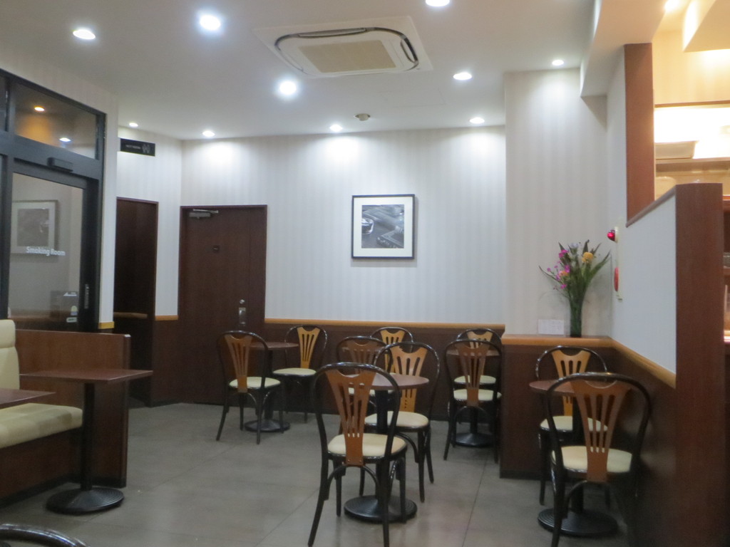 中も、広々ゆったりしていて、けっこう落ち着ける感じ。今では、ガラスの壁で分煙もしっかりなされているから、たばこを吸いたい人も、苦手な人も、自由に時間を過ごすことができるんだ。