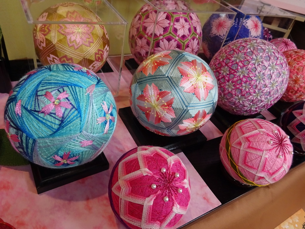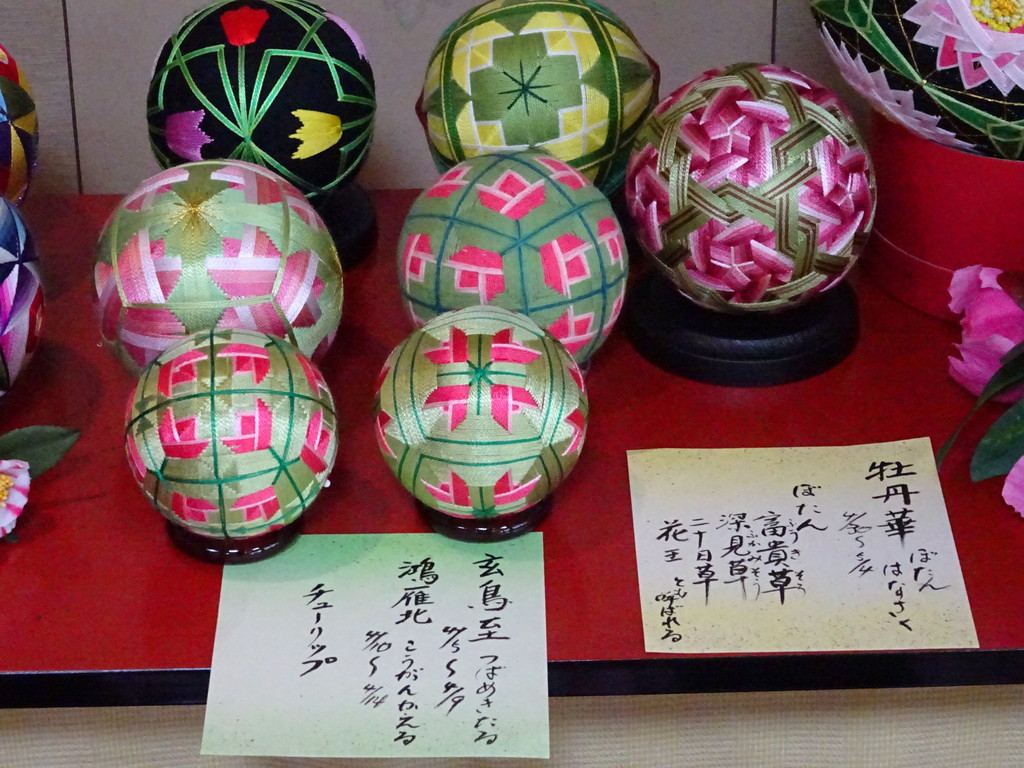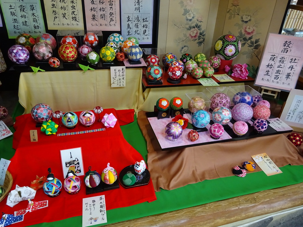 お店の中では、地元の手まり会の人が作った手まりが展示されていたんだ。