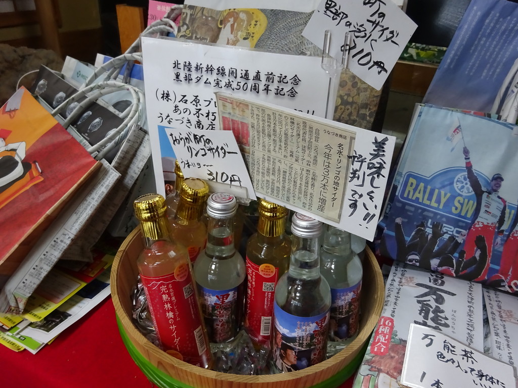 お店には、宇奈月の地サイダーも並べてあったな。『黒部の泡水』は、ラベルが、映画『黒部の太陽』をインスパイアしていて面白かったな。