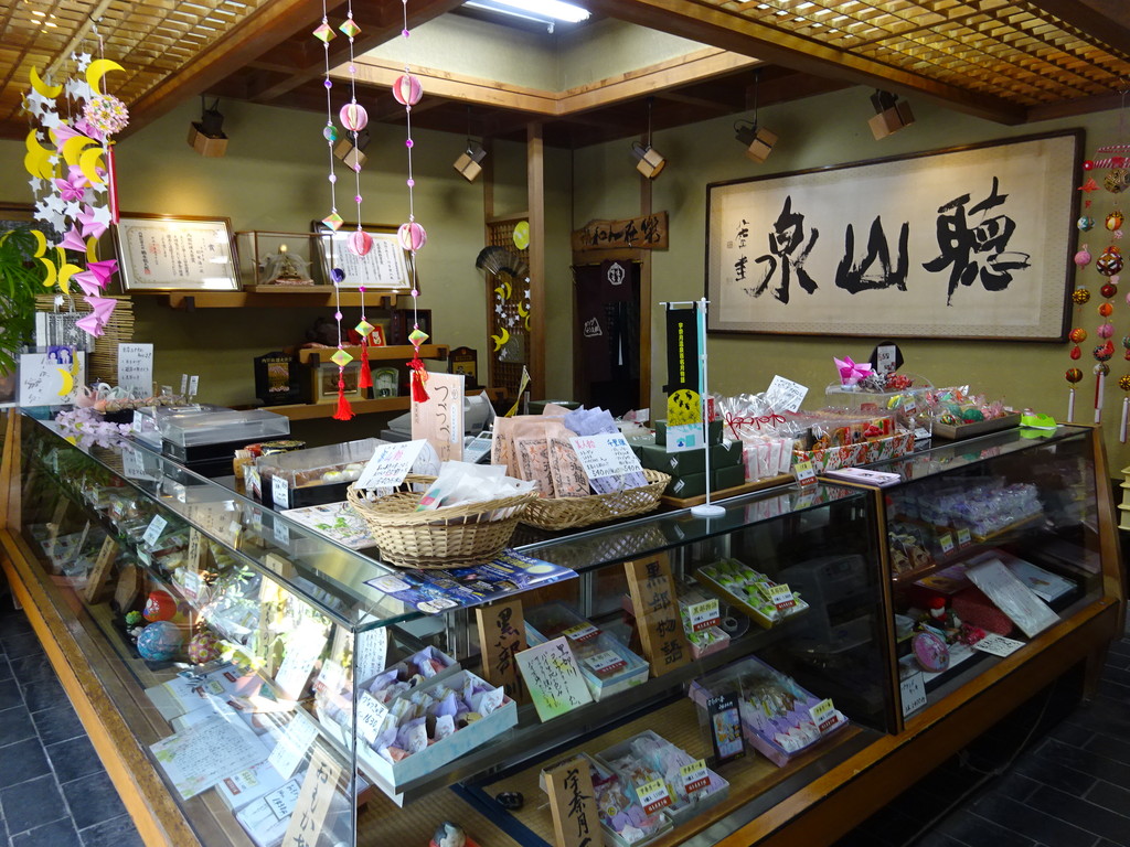 宇奈月温泉街には、和菓子のお店がいくつもあるよね。旅館やお土産屋さんでも買うことができるけれど、ここはやはりお店を訪れて、そこで買う方が気分が盛り上がると思うんだ。