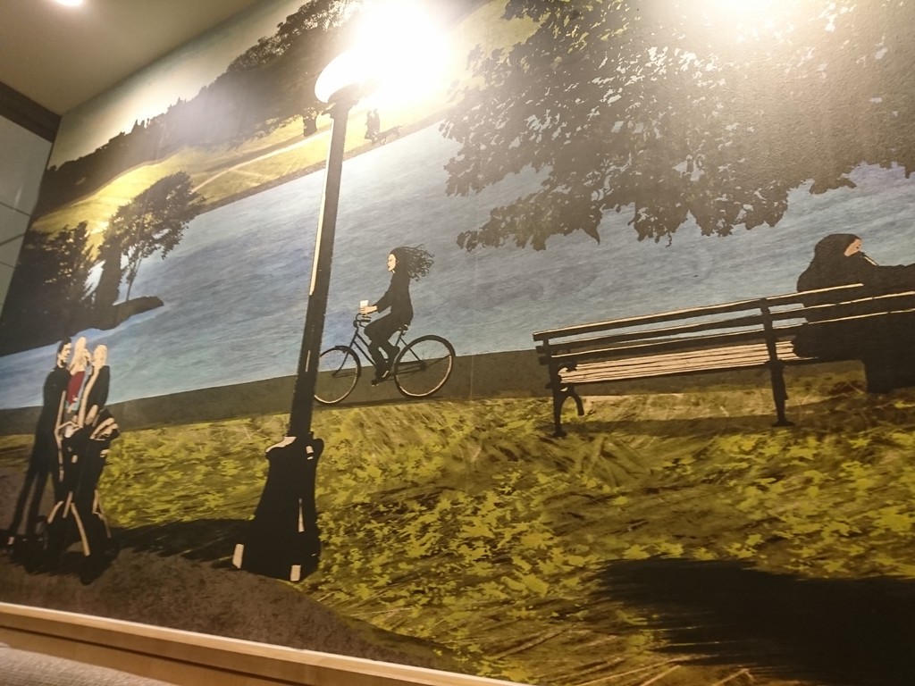 こんな大きな絵の壁紙が貼られていたよ。シアトルっぽい風景だと思うのは、ボクの勝手な思い込み?