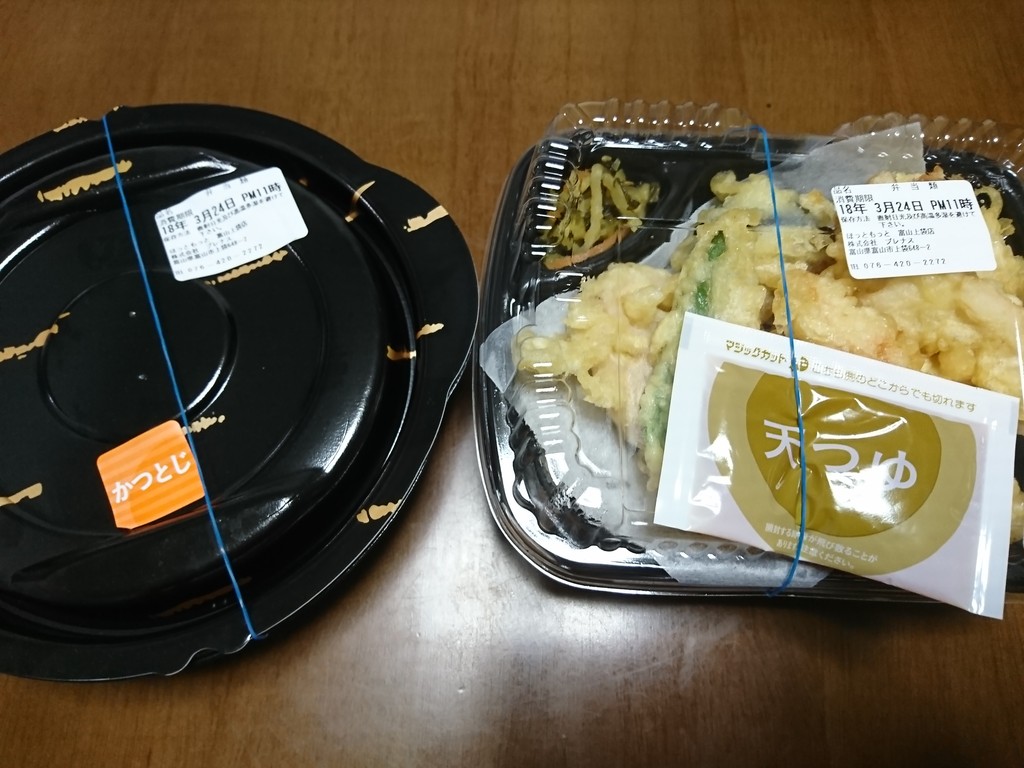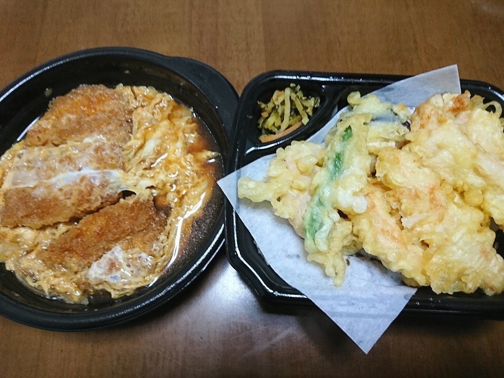 この夜は、期間限定の「とり天丼」と「ロースかつとじ」のおかずのみという取り合わせ。こんな二つの檻に入ってきたよ。とり天丼は、ひょっとしたら、もう期間が終わってしまっただろうか。