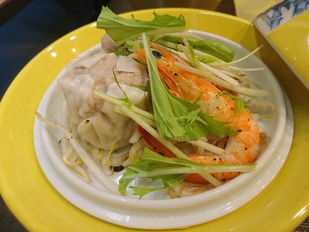 蒸し物には、シューマイとエビと野菜。陶器の中に水を入れると、熱が出て蒸されていく、っていう化学反応的調理法が面白かったんだ。