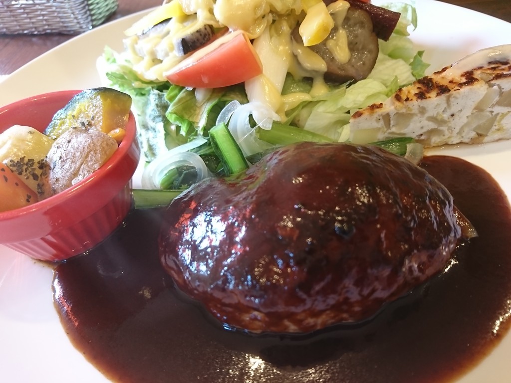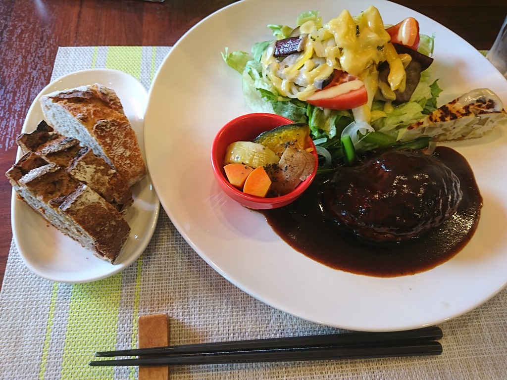 ランチは、いろんな種類があって、どれにするか迷ったけれど、初訪問ではスタンダードなメニューを選ぶのが吉だよね。この日は、ハンバーグのサラダプレートにしてみたよ。