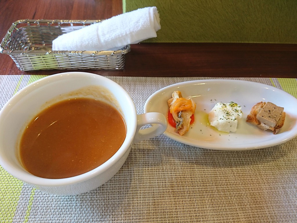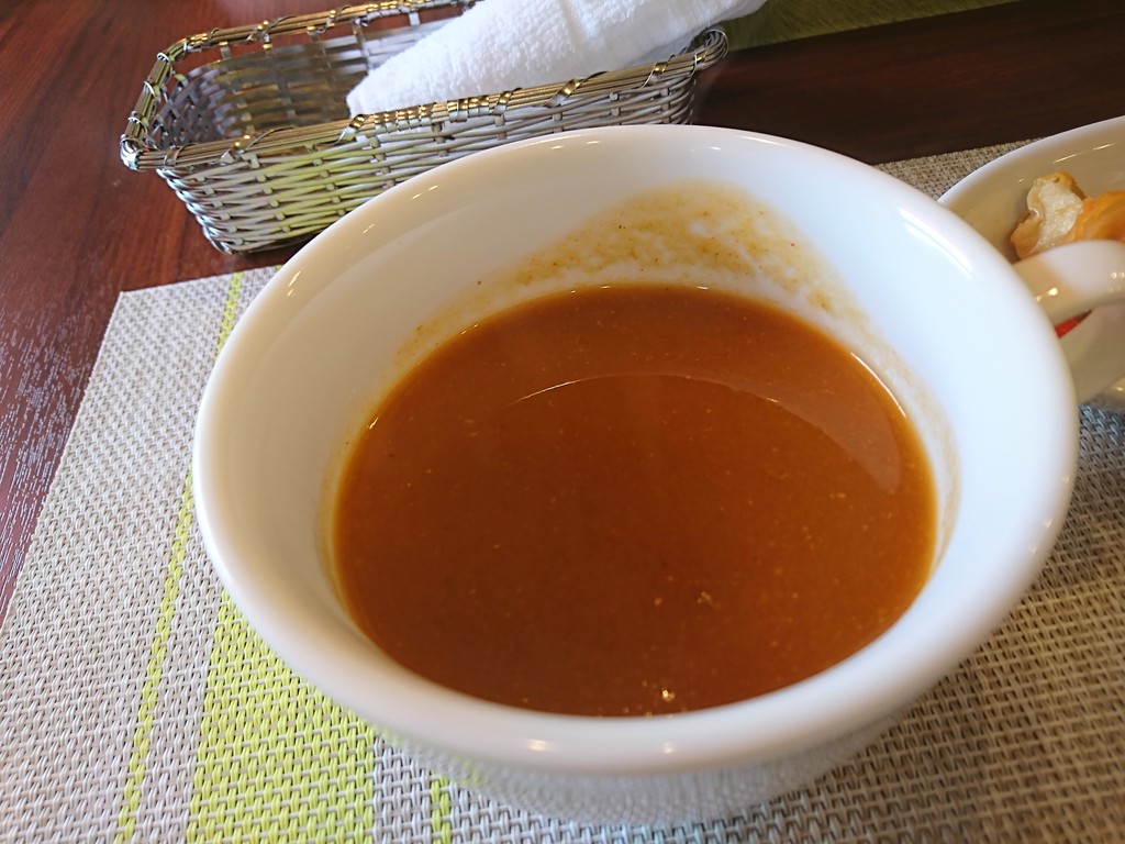 スープはカレーの風味とトマトの味が絶妙な組み合わせの、レストランな感じのスープ。