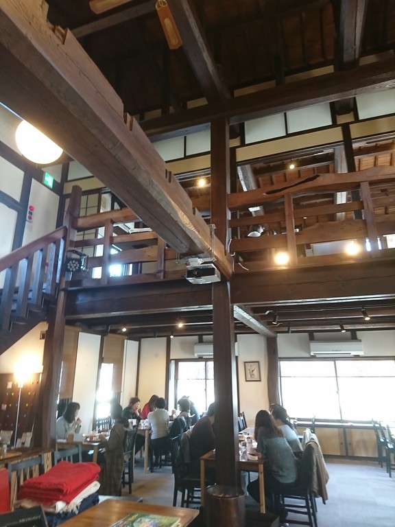 中は、吹き抜け風になっていて、階段を上って2階にもいけるみたい。1階にも2階にもテーブルがけっこうあったけど、席は全て埋まっていて、かなり人気のあるお店なのだとわかったよ。それも、女性のお客さんばかりで、男は数えるほどなのだった