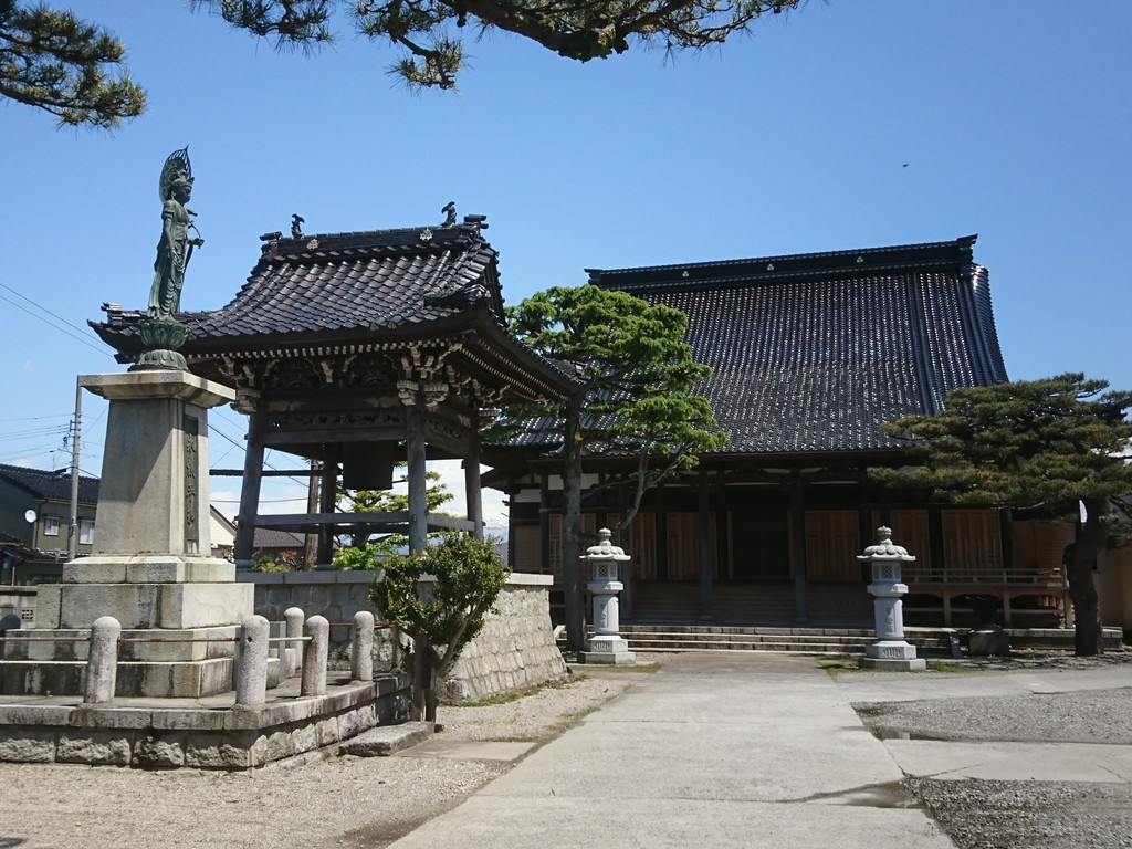 お寺の前にバス停があるのを見つけたよ。富山駅行きと滑川行きとがあったところを見ると、この辺りが、かつての水橋の中心地だったんだと思ったんだ。近くには、北陸銀行だの富山第一銀行だの新川信金だのと金融機関の支店が並んでいるし、スーパーマーケットや肉屋さんらしき建物もいくつも並んでいたからね。