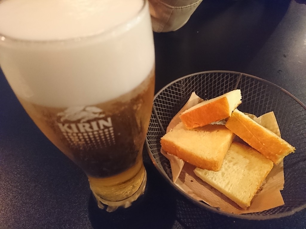 地中海料理を看板にしているこのお店。メニューもそういうラインナップだから、何にしたらいいか迷ったけど、アヒージョと生ビールがセットになっていたから、それを注文。ビールは、ボクの好きなキリンのハートランドだったしね。