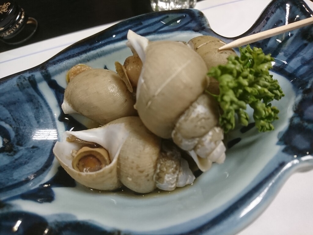 けっこう大振りで、そこそこ歯ごたえがあるけど、さっくりかみ切れる程度には柔らかい、そんな絶妙なばい貝が、甘辛く味付けされて、それはもうこの世のものとも思えない美味しさ。ばい貝は夏のもの、それも小ばい貝に限ると思っていたけど、どうしてどうして、今の時期のばい貝もとってもいいのだった。ぽんぽん。