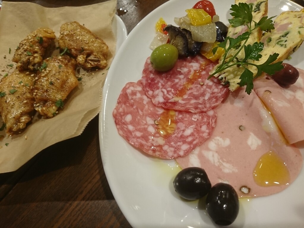 右は、オードブルの盛り合わせ。この店には、よりイタリアンなメニューもあったから頼んでみたんだ。