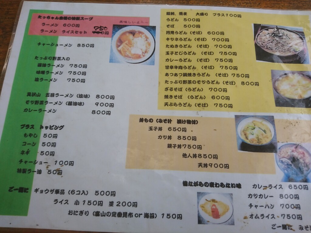 この店のメニューがこちらだよ。ここ1年の間に、『焼肉』『からあげ』『メンチカツ』『チキンカツ』と制覇してきたんだ。この店のランチを食べ尽くしてみたいというのが、目下の願望。次回は、『野菜いため定食』が第一希望だな。