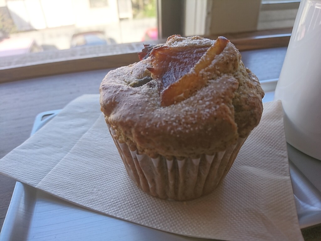 リンゴとアールグレイのマフィンは、マフィン自体の甘さ控えめで、それでいて、リンゴのコンポートの香りと甘さが豊かな逸品だったよ。