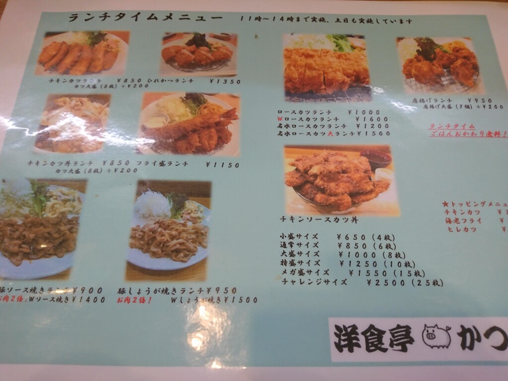 ランチメニューはこんな感じ。『ヒレカツランチ』とか『豚しょうが焼きランチ』とかが、お安くいただけるみたいだね。