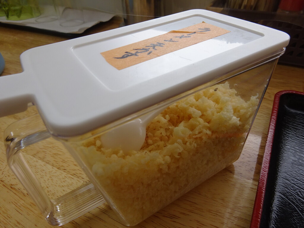 天かすもあったから入れてみたよ。脂分がまして、さらにいい感じに味が変わったんだ。