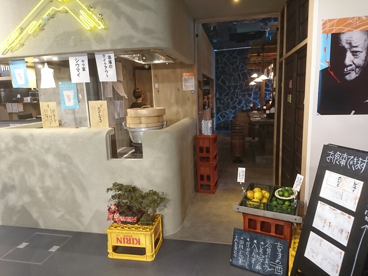 この日は2度目の「SOGAWA BASE」。中をぐるっと見回すと、何やら奥まったところに、閉じられた一角があるではないか。「酒場ヤマ富」は、カウンターがメインの居酒屋。昼からずっとやっているから、昼飲みスポットにも最適なお店だったよ。