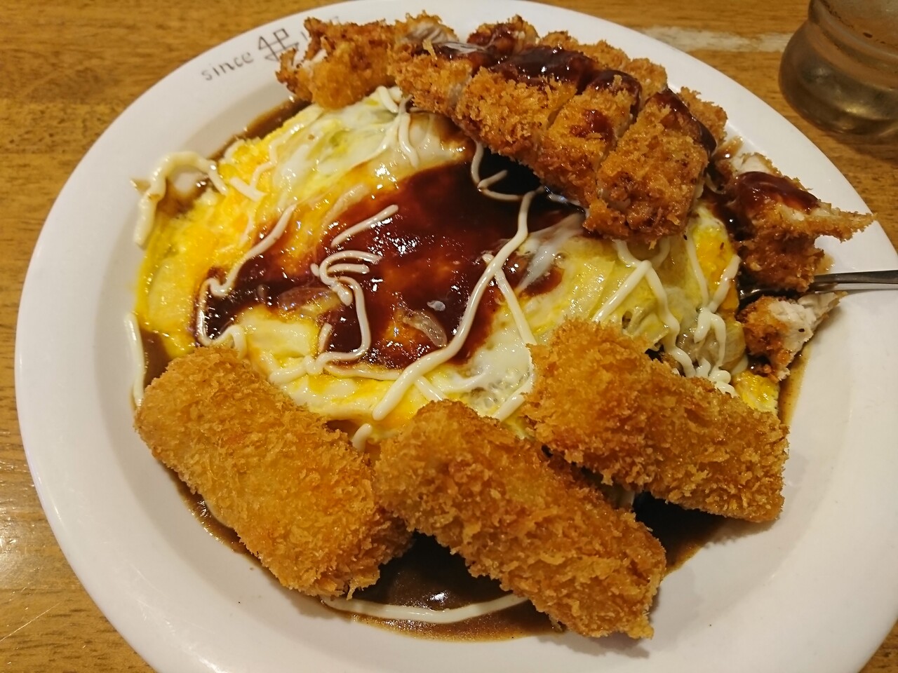 この日頼んだのは、『やさたまチキンコロッケカレー』。ダイエット中なれば、トッピングは3種に限るのだ、って、それでも多いか(笑)。サクサクのチキンカツと、とろとろのクリームコロッケが、薄く焼き上げた野菜入り卵焼きの上にのってる、という秀逸な一品。たまごにかかったソースとマヨネーズがトッピングの味を引き立ててくれるよね。ルーは、納得安心の「カレー屋伊東」品質で、食べれば満足のこれまた逸品なんだ。