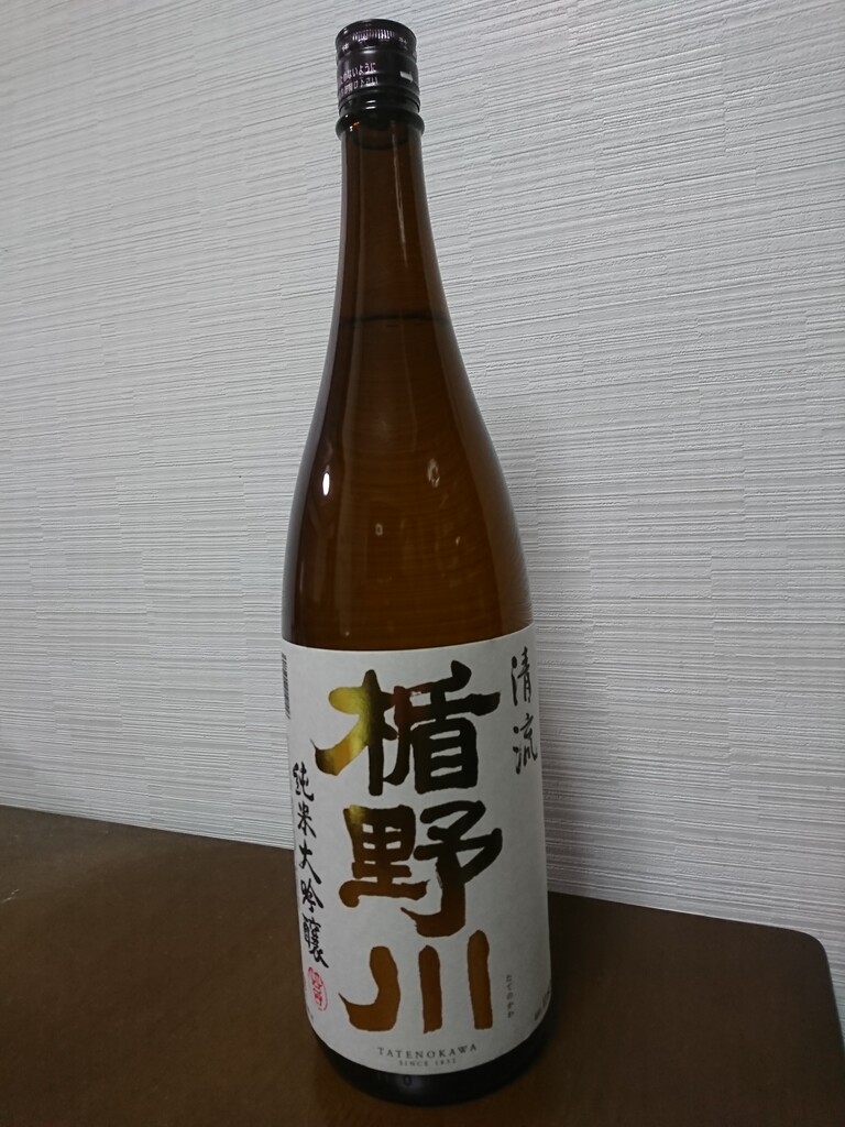 。かくして、購入したのがこちらだよ。山形の銘酒「楯野川」の『純米大吟醸』。送料がかかったんだけど、年末キャンペーンポイントも500ポイント付いたみたいで、結局自分の持ち出しは、20ポイント。