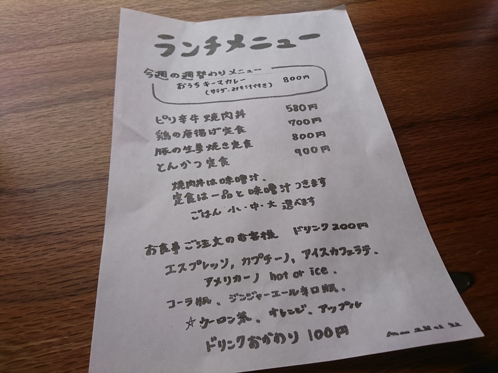 こちらがランチメニュー。580円から食べられるあたり、リーズナブルでしょ。