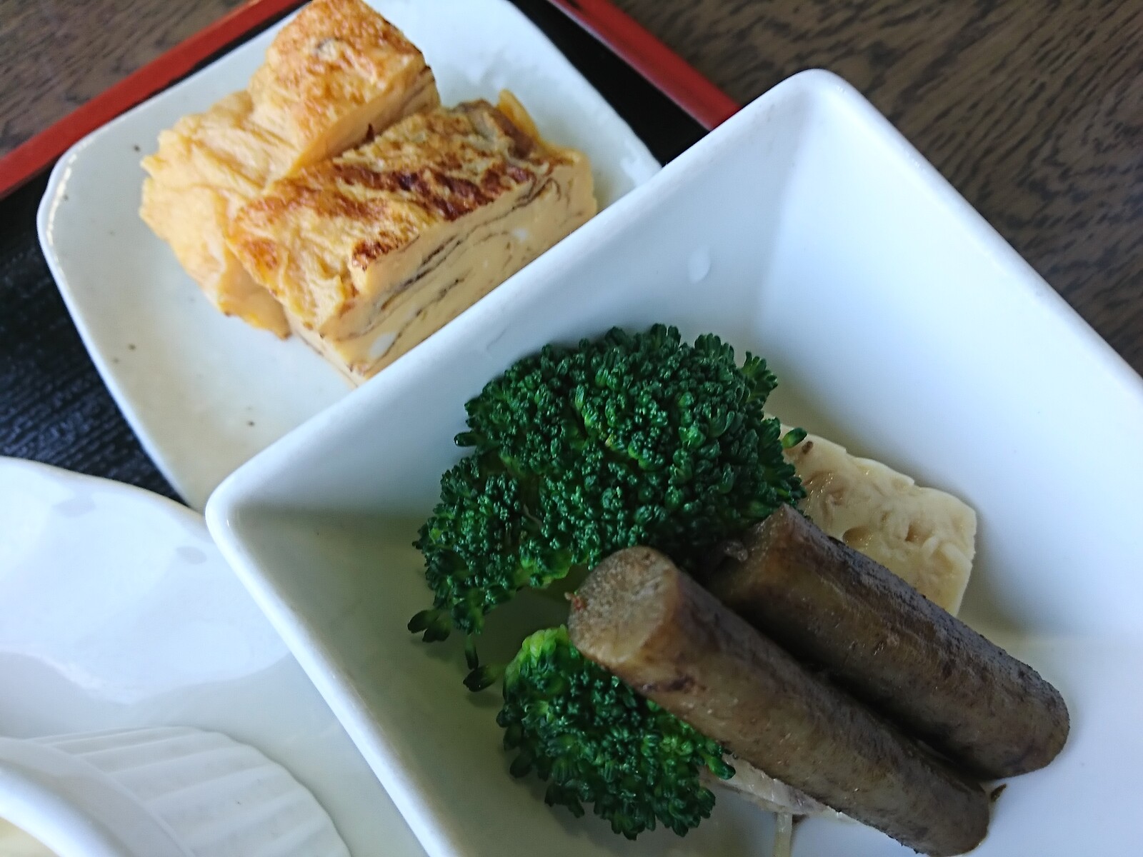 小皿には、だし巻き玉子、そして、小鉢には、ブロッコリーとごぼうと煮こごり風な一品。それぞれが、立派におかずの役をなしていて、これまた見事なんだ。