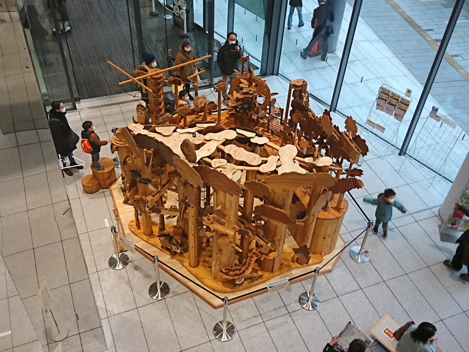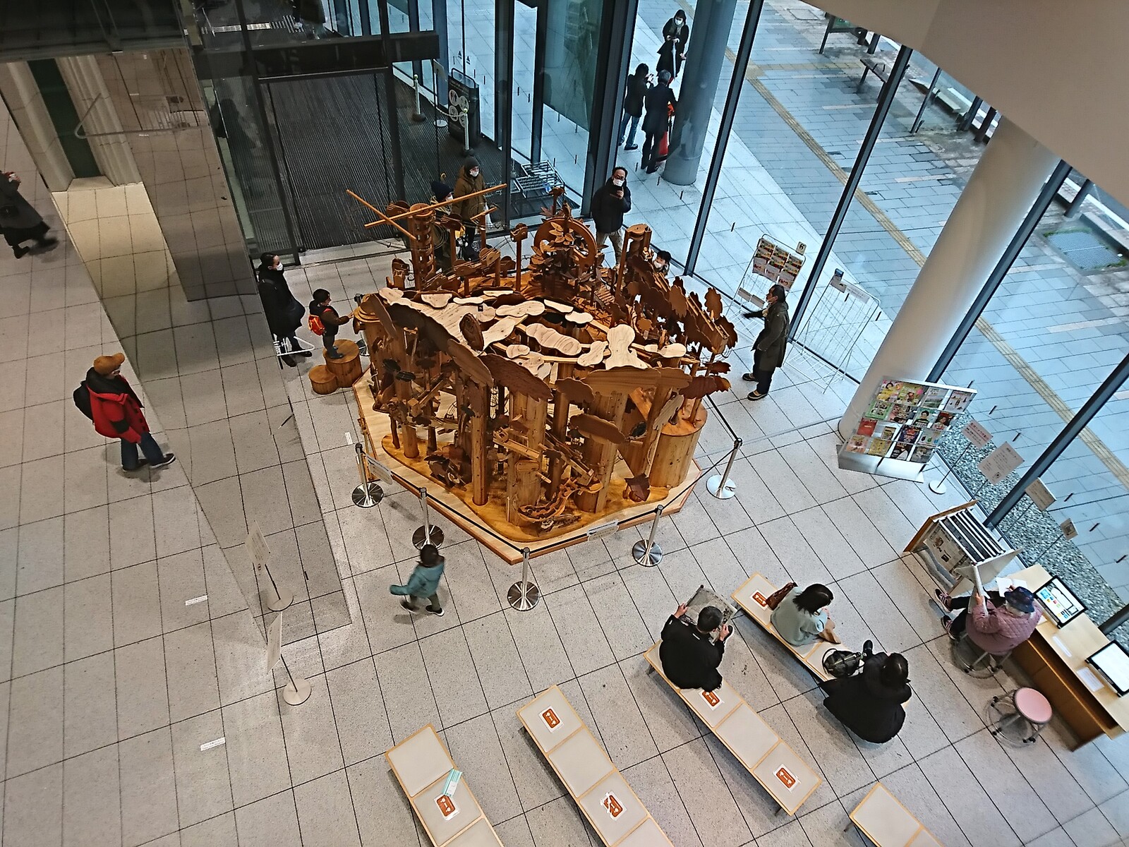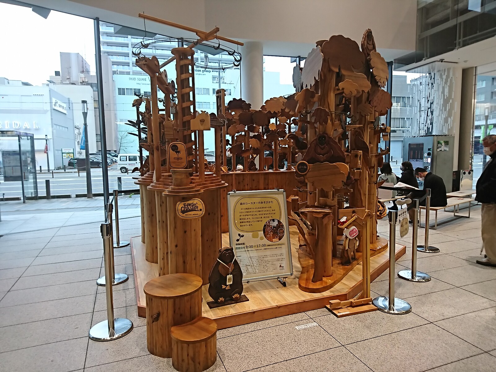 西町にある、「富山市ガラス美術館&富山市立図書館」の1階ロビーに、こんな木造りのおもちゃみたいなものが置かれたのは、3月のはじめのこと。森が育つ過程を表現したこの木製玩具は『森のコースター』っていうみたいだね。