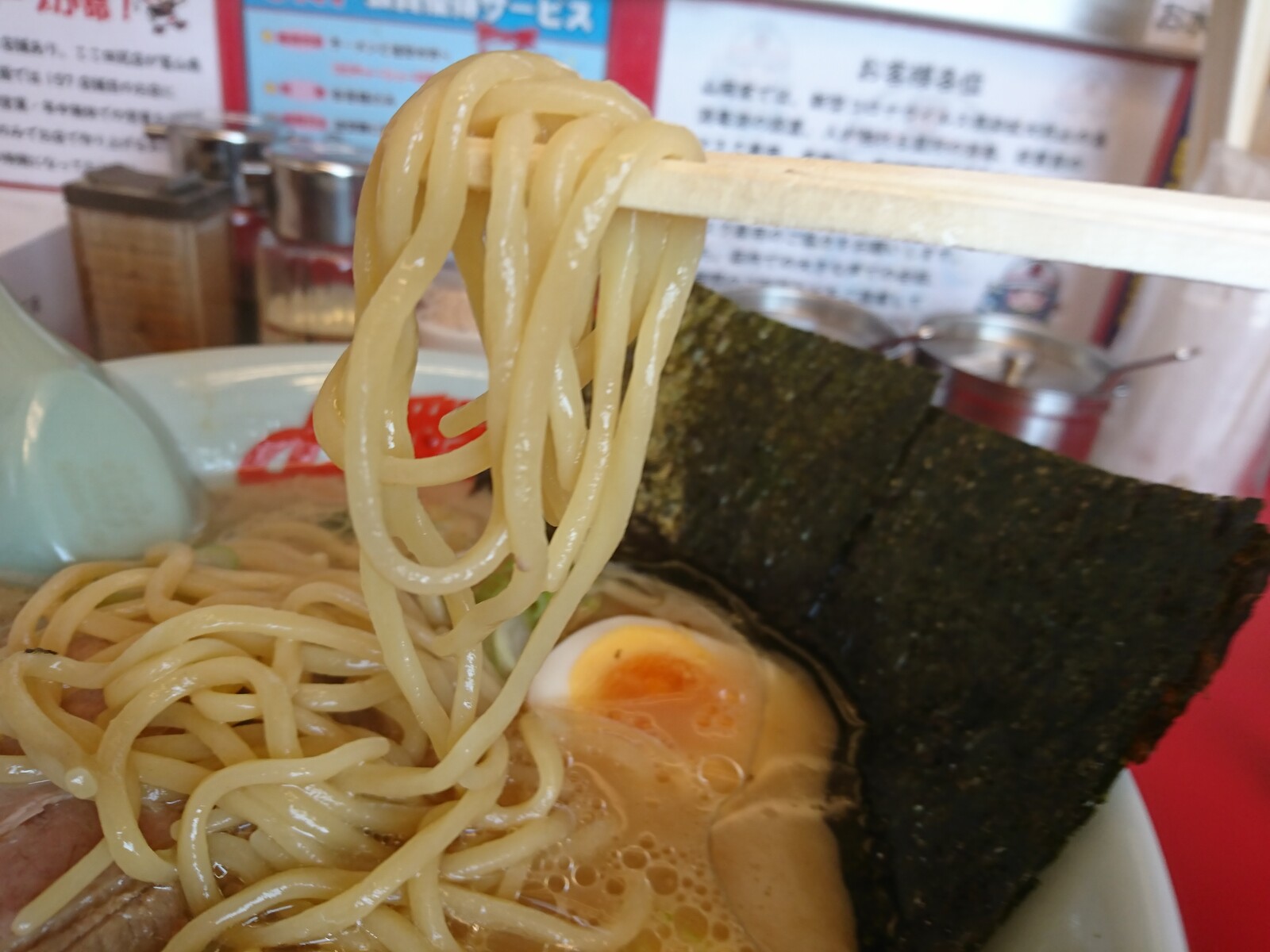チャーシューは身の詰まったかためで、存在感があったよ。麺はやや太めで、スープをしっかり絡めてくれるんだ。