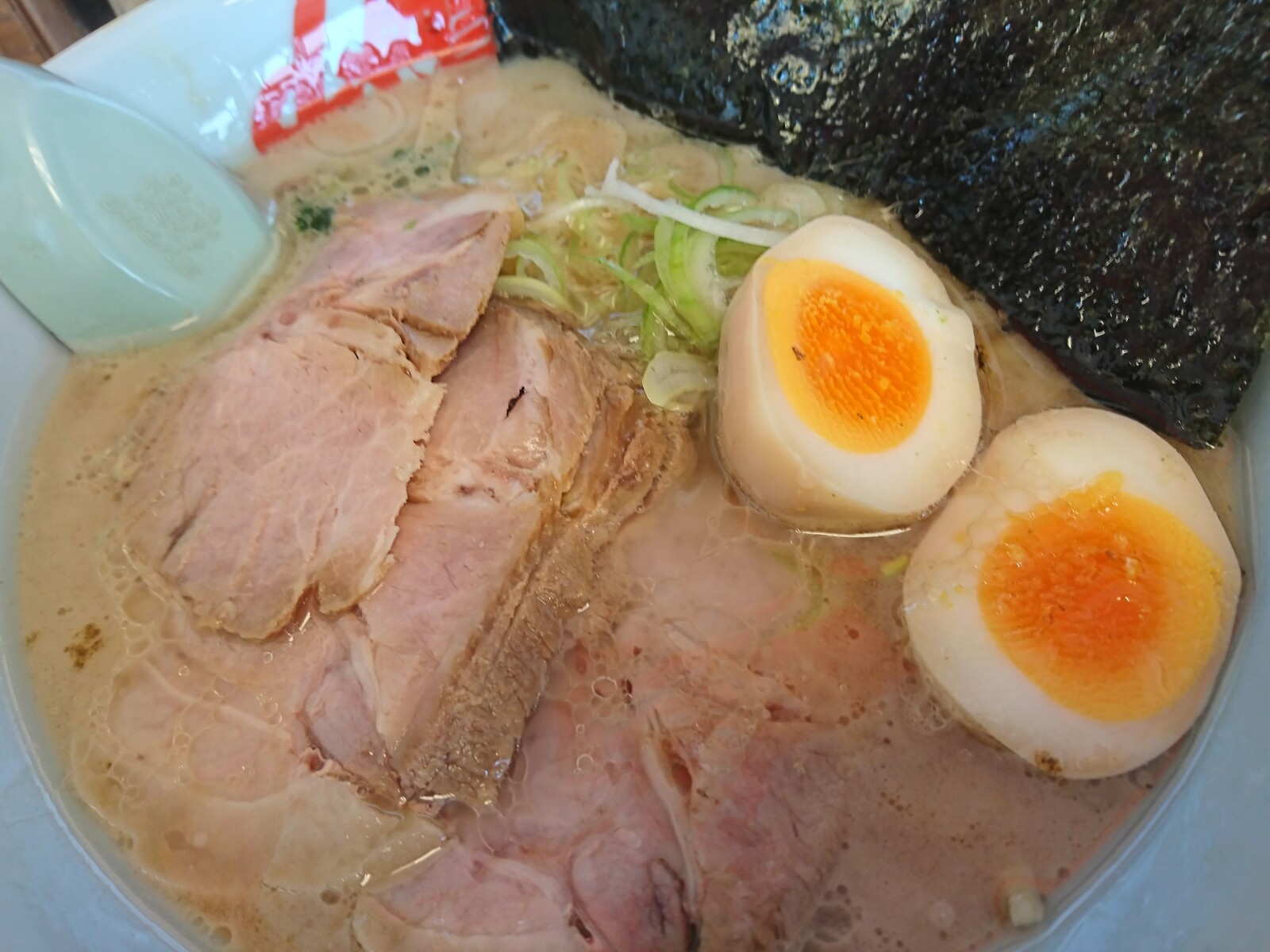 JAFの会員だと、味玉かコロチャーシューをサービスしてくれるんだ。この間、たまたま家族が会員になって、ボクも一緒に家族会員になったところだったから、会員証を持っていたんだよね。だから、トッピングの味玉はサービス。