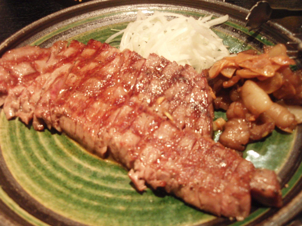 サーロインステーキは、ミディアムにほどよく焼き上がっていたよ。ローストガーリックが添えてあって、一緒に食べるとビールが進むよね。